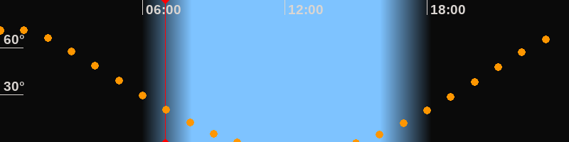 Höchster Stand (Kulmination)00:30 Uhr (h = 71,8°)