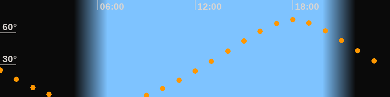 Höchster Stand (Kulmination)18:01 Uhr (h = 71,8°)
