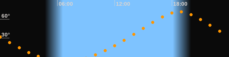 Höchster Stand (Kulmination)18:45 Uhr (h = 71,8°)