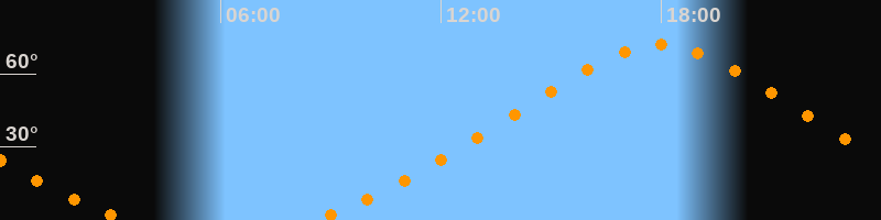 Höchster Stand (Kulmination)17:58 Uhr (h = 71,8°)