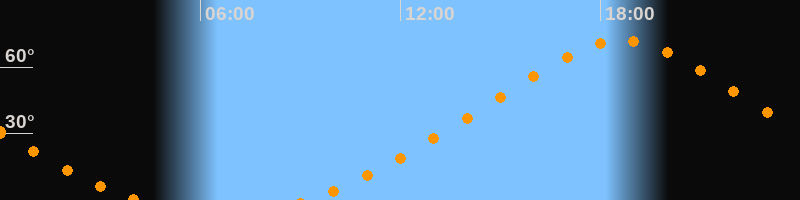 Höchster Stand (Kulmination)18:38 Uhr (h = 71,8°)