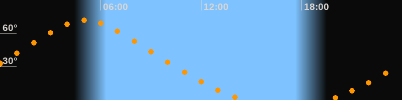Aufgang19:29 Uhr im Nordosten (αAz = 30,4°)