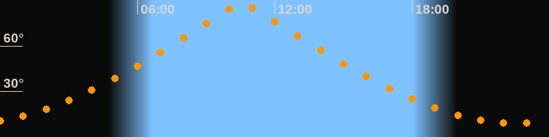 Höchster Stand (Kulmination)10:34 Uhr (h = 87,7°)