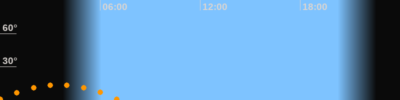 Aufgang23:46 Uhr im Südosten (αAz = 131,9°)