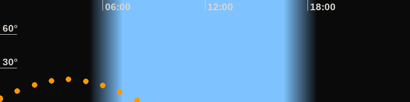 Aufgang23:29 Uhr im Südosten (αAz = 120,6°)