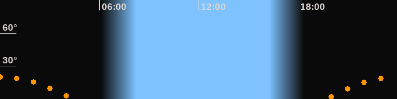 Höchster Stand (Kulmination)00:00 Uhr (h = 20°)