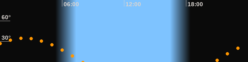 Höchster Stand (Kulmination)02:22 Uhr (h = 34,7°)