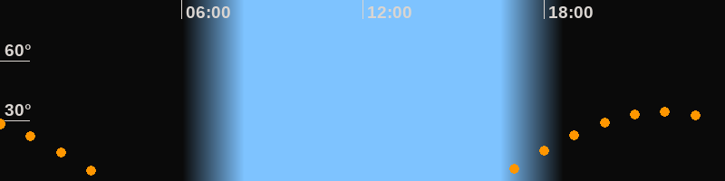 Höchster Stand (Kulmination)21:55 Uhr (h = 34,7°)