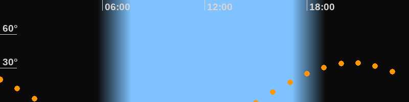Höchster Stand (Kulmination)20:38 Uhr (h = 34,7°)