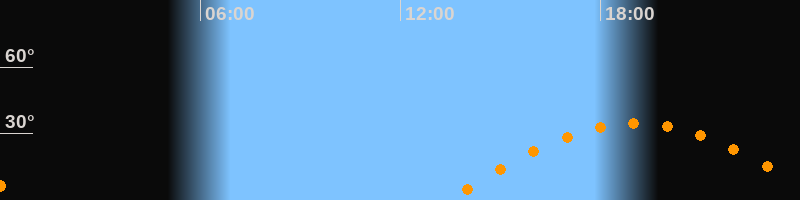 Höchster Stand (Kulmination)19:04 Uhr (h = 34,7°)