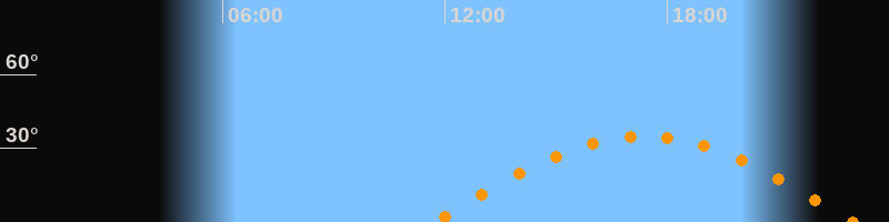 Höchster Stand (Kulmination)17:23 Uhr (h = 34,7°)