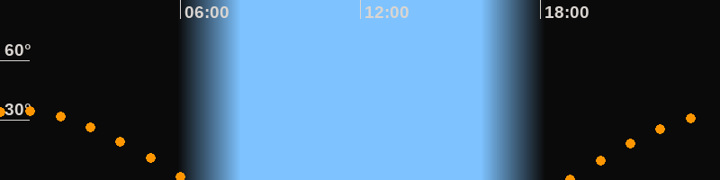 Höchster Stand (Kulmination)00:32 Uhr (h = 34,7°)