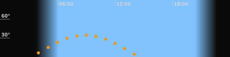 Höchster Stand (Kulmination)08:53 Uhr (h = 34,7°)