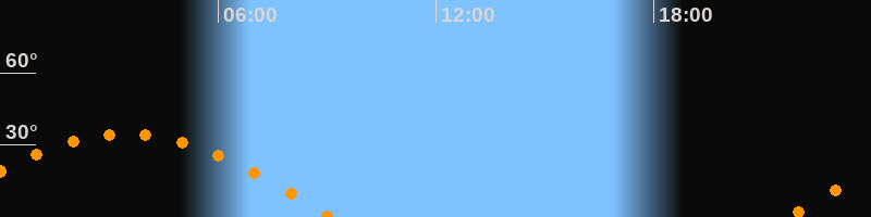 Höchster Stand (Kulmination)03:27 Uhr (h = 34,7°)