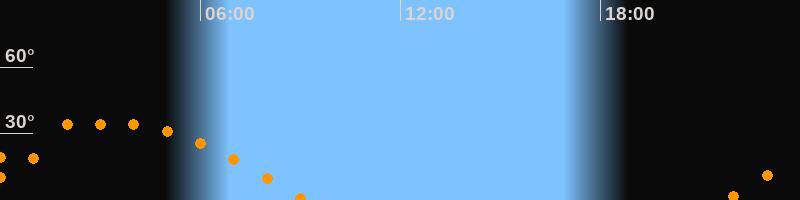 Höchster Stand (Kulmination)03:28 Uhr (h = 34,7°)