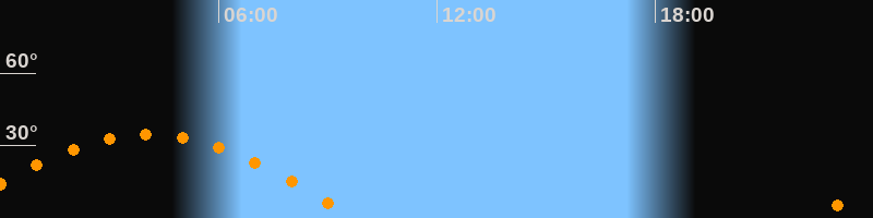 Höchster Stand (Kulmination)04:04 Uhr (h = 34,7°)