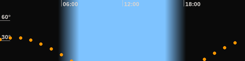 Höchster Stand (Kulmination)01:24 Uhr (h = 34,7°)