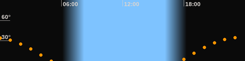 Höchster Stand (Kulmination)23:19 Uhr (h = 34,7°)