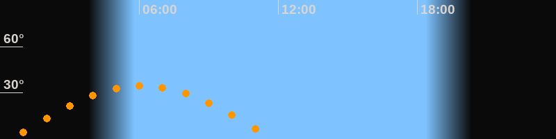 Höchster Stand (Kulmination)06:07 Uhr (h = 34,7°)