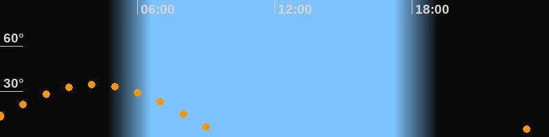 Höchster Stand (Kulmination)04:06 Uhr (h = 34,7°)