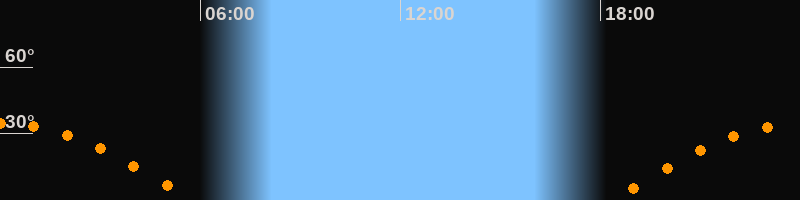 Höchster Stand (Kulmination)00:01 Uhr (h = 34,7°)