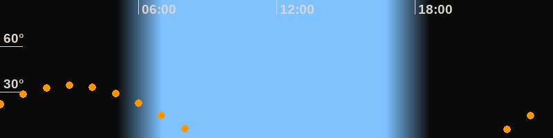 Höchster Stand (Kulmination)03:02 Uhr (h = 34,7°)