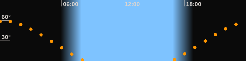 Höchster Stand (Kulmination)00:25 Uhr (h = 59°)