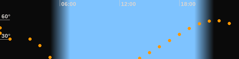 Höchster Stand (Kulmination)21:34 Uhr (h = 59°)