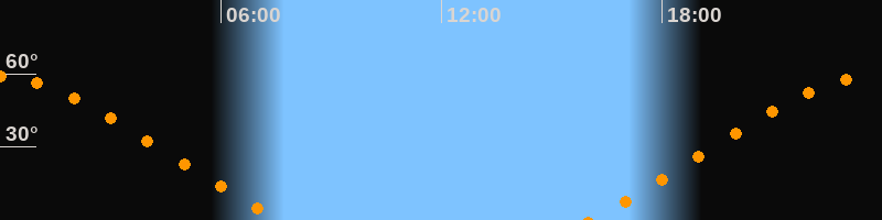 Höchster Stand (Kulmination)23:48 Uhr (h = 59°)