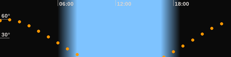 Höchster Stand (Kulmination)00:43 Uhr (h = 59°)