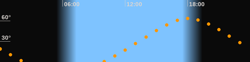 Höchster Stand (Kulmination)18:04 Uhr (h = 63,4°)