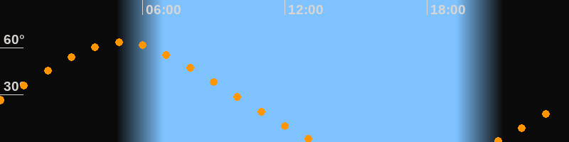 Höchster Stand (Kulmination)05:06 Uhr (h = 63,4°)