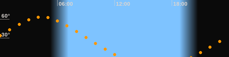 Höchster Stand (Kulmination)04:21 Uhr (h = 63,4°)