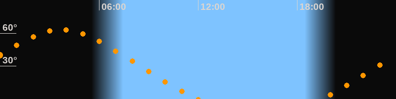 Aufgang19:23 Uhr im Nordosten (αAz = 48,9°)