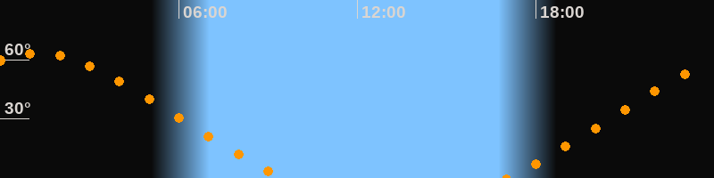 Höchster Stand (Kulmination)01:18 Uhr (h = 63,4°)