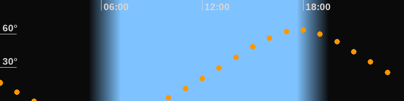 Höchster Stand (Kulmination)17:46 Uhr (h = 63,4°)