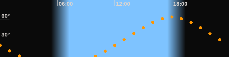 Höchster Stand (Kulmination)17:59 Uhr (h = 63,4°)