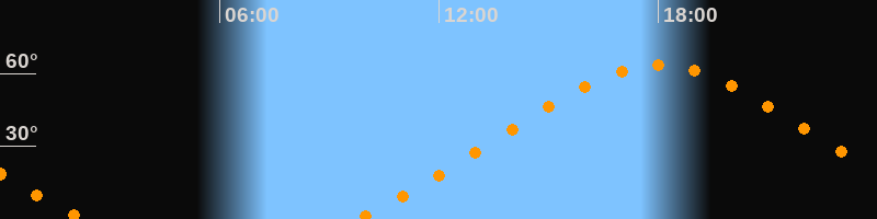 Höchster Stand (Kulmination)18:00 Uhr (h = 63,4°)