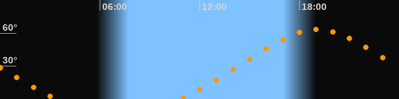 Höchster Stand (Kulmination)19:04 Uhr (h = 63,4°)