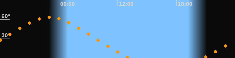 Höchster Stand (Kulmination)05:00 Uhr (h = 63,4°)