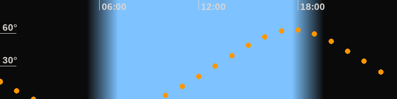 Höchster Stand (Kulmination)17:43 Uhr (h = 63,4°)