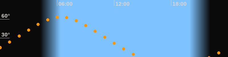 Höchster Stand (Kulmination)06:23 Uhr (h = 63,4°)