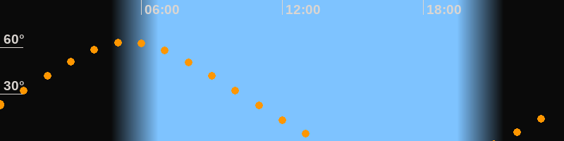 Höchster Stand (Kulmination)05:28 Uhr (h = 63,4°)