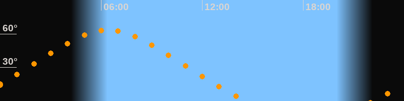 Höchster Stand (Kulmination)06:24 Uhr (h = 63,4°)