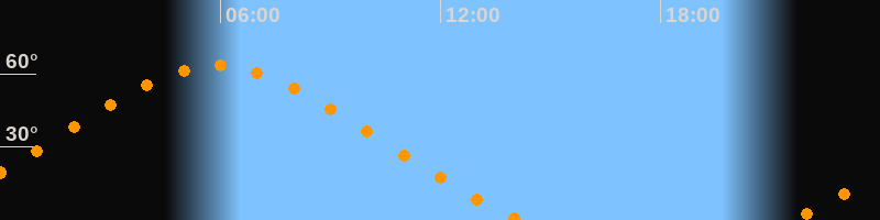 Höchster Stand (Kulmination)05:54 Uhr (h = 63,4°)