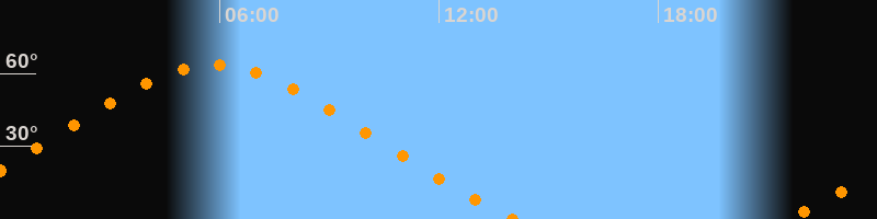 Höchster Stand (Kulmination)05:50 Uhr (h = 63,4°)