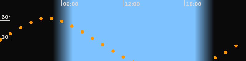 Höchster Stand (Kulmination)04:37 Uhr (h = 63,4°)