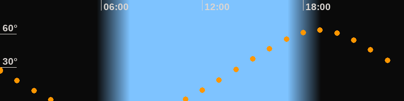 Höchster Stand (Kulmination)18:56 Uhr (h = 63,4°)