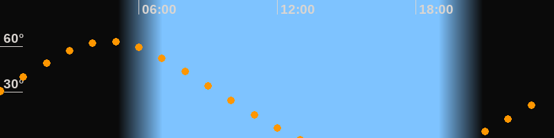 Höchster Stand (Kulmination)04:41 Uhr (h = 63,4°)