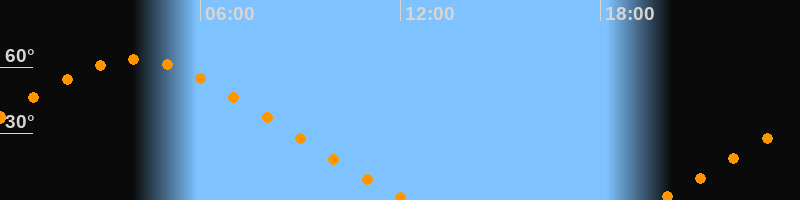 Höchster Stand (Kulmination)04:00 Uhr (h = 63,4°)